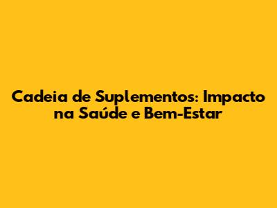 Cadeia De Suplementos: Impacto Na Saúde E Bem-Estar