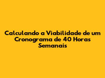 Calculando A Viabilidade De Um Cronograma De 40 Horas Semanais
