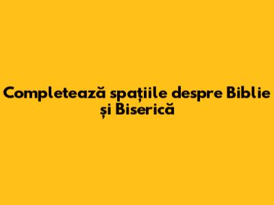 Hey guys! Astăzi ne vom testa cunoștințele despre Biblie și Biserică. Am pregătit un exercițiu super interesant în care trebuie să completați spațiile libere cu informațiile corecte. Fiți atenți, unele întrebări pot fi mai dificile, dar sunt sigur că vă veți descurca de minune!