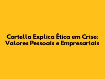 Cortella Explica Ética Em Crise: Valores Pessoais E Empresariais