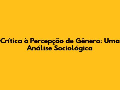Crítica À Percepção De Gênero: Uma Análise Sociológica