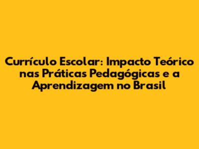 Currículo Escolar: Impacto Teórico Nas Práticas Pedagógicas