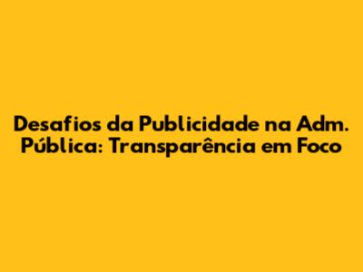 Desafios Da Publicidade Na Adm. Pública: Transparência Em Foco
