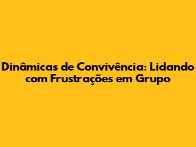 Dinâmicas De Convivência: Lidando Com Frustrações Em Grupo