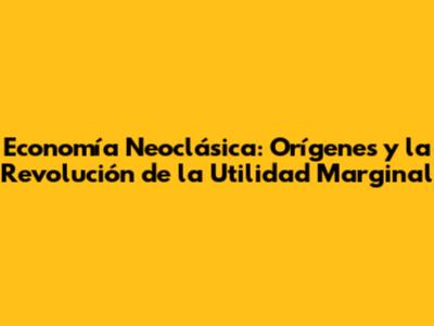Economía Neoclásica: Orígenes Y La Revolución De La Utilidad Marginal