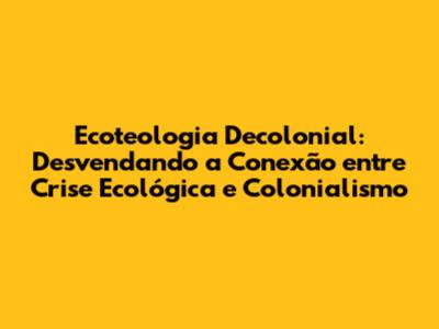 Ecoteologia Decolonial: Repensando A Crise Ecológica E O Colonialismo