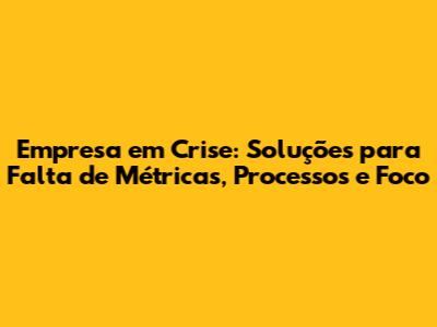 Empresa Em Crise: Soluções Para Falta De Métricas, Processos E Foco