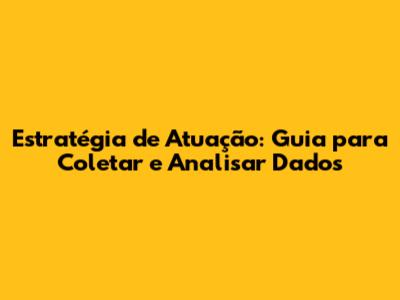 Estratégia De Atuação: Guia Para Coletar E Analisar Dados