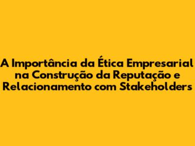 Ética Empresarial: Reputação, Stakeholders, E Sustentabilidade