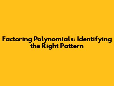 Factoring Polynomials: Identifying The Right Pattern