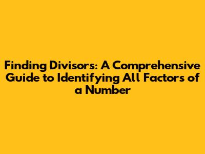 Whether youâre a student looking to ace your math tests or simply a curious mind wanting to understand the intricacies of numbers, the ability to find divisors is a valuable skill. It enhances your problem-solving abilities, improves your number sense, and opens the door to more advanced mathematical concepts. So, keep honing your skills, exploring new challenges, and enjoying the fascinating world of numbers. And remember, every great mathematician started with the basics â like finding divisors. Youâre well on your way to greatness!