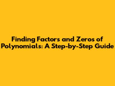 Finding Factors And Zeros Of Polynomials: A Step-by-Step Guide