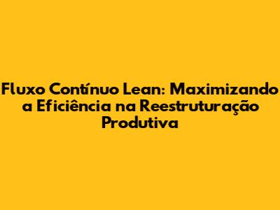 Fluxo Contínuo Lean: Ações Essenciais Na Reestruturação Produtiva