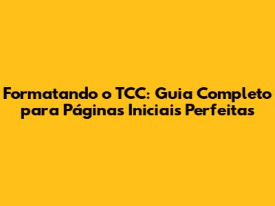 Formatando O TCC: Guia Completo Para Páginas Iniciais Perfeitas