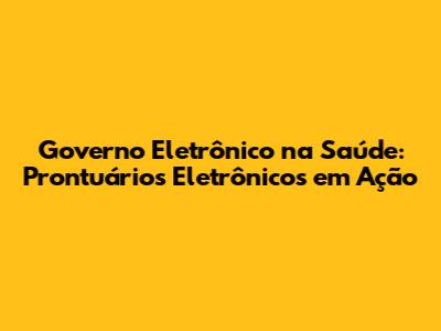 Governo Eletrônico Na Saúde: Prontuários Eletrônicos Em Ação