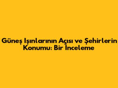 Güneş Işınlarının Açısı Ve Şehirlerin Konumu: Bir İnceleme