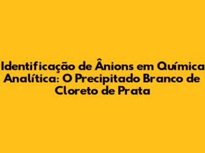 Identificação De Ânions: Precipitado Branco De Cloreto De Prata