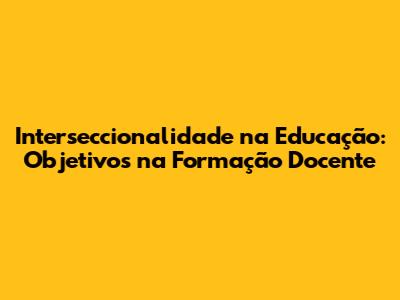Interseccionalidade Na Educação: Objetivos Na Formação Docente