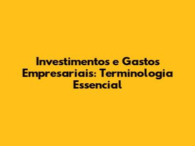 Investimentos E Gastos Empresariais: Terminologia Essencial