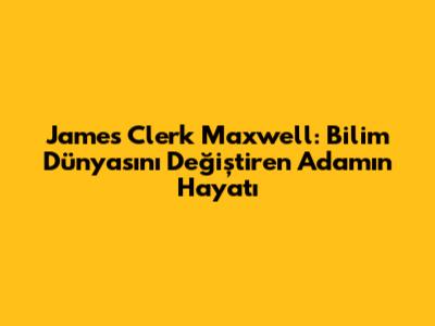 James Clerk Maxwell: Bilim Dünyasını Değiştiren Adamın Hayatı