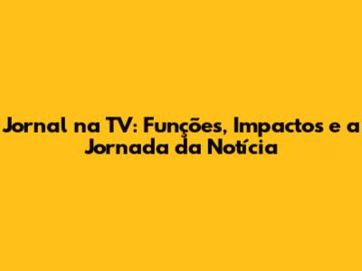 Jornal Na TV: Funções, Impactos E A Jornada Da Notícia