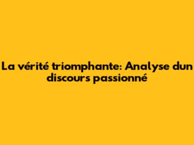 La Vérité Triomphante: Analyse D'un Discours Passionné