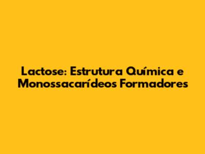 Lactose: Estrutura Química E Monossacarídeos Formadores