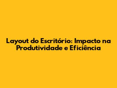 Layout Do Escritório: Impacto Na Produtividade E Eficiência