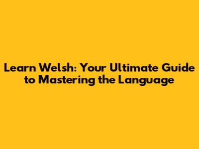 Learn Welsh: Your Ultimate Guide To Mastering The Language