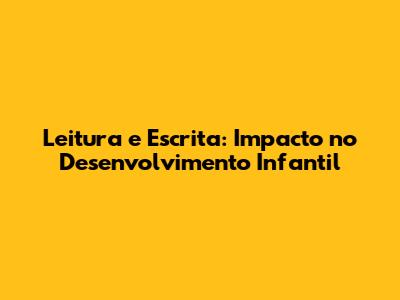 Leitura E Escrita: Impacto No Desenvolvimento Infantil