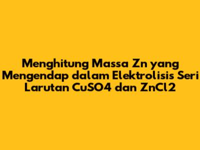 Sekarang, mari kita pecahkan soal yang diberikan. Soalnya berbunyi: Dalam elektrolisis seri larutan CuSO4 dan ZnCl2, jika massa Cu yang mengendap adalah 127 gram (Ar Cu = 63,5), berapakah massa Zn yang mengendap (Ar Zn = 30)?