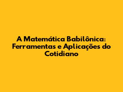 Matemática Babilônica: Ferramentas E Aplicações Do Cotidiano