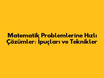 Matematik Problemlerine Hızlı Çözümler: İpuçları Ve Teknikler