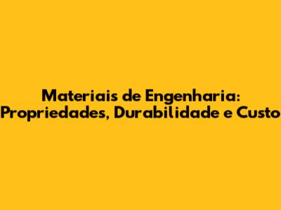 Materiais De Engenharia: Propriedades, Durabilidade E Custo
