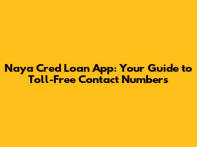 Naya Cred Loan App: Toll-Free Contact Numbers