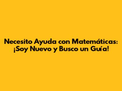 Necesito Ayuda Con Matemáticas: ¡Soy Nuevo Y Busco Un Guía!