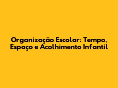 Organização Escolar: Tempo, Espaço E Acolhimento Infantil