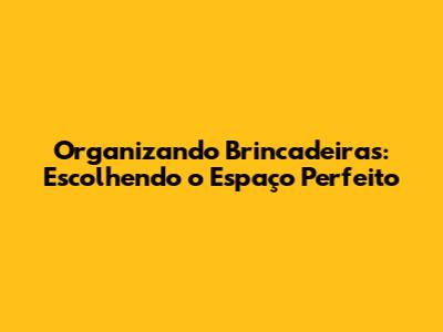 Organizando Brincadeiras: Escolhendo O Espaço Perfeito
