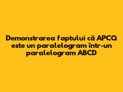 Pentru a demonstra că APCQ este un paralelogram, vom urma o serie de pași logici. Acești pași ne vor ajuta să construim argumentul în mod clar și concis. Iată o schiță a pașilor pe care îi vom urma: