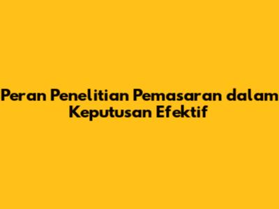 Peran Penelitian Pemasaran Dalam Keputusan Efektif