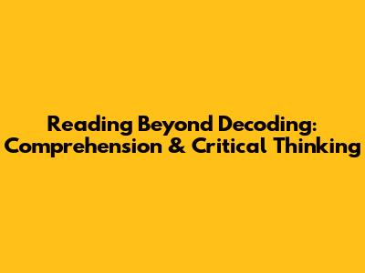 Reading Beyond Decoding: Comprehension & Critical Thinking