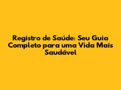 Registro De Saúde: Seu Guia Completo Para Uma Vida Mais Saudável