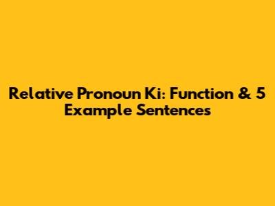 Relative Pronoun 'Ki': Function & 5 Example Sentences
