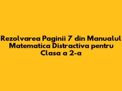Salutare, dragi parinti si elevi de clasa a 2-a! In acest articol, ne vom aventura impreuna in lumea fascinanta a matematicii prin rezolvarea exercitiilor de la pagina 7 din manualul "Matematica Distractiva". Stim ca uneori matematica poate parea un pic complicata, dar cu rabdare, explicatii clare si multa practica, totul devine mai usor si chiar distractiv. Ne vom asigura ca fiecare pas este explicat in detaliu, astfel incat sa intelegeti perfect cum sa abordati problemele. Haideti sa pornim impreuna in aceasta calatorie matematica!