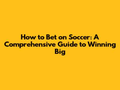 Soccer Betting: A Comprehensive Guide To Winning Big