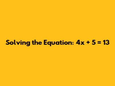 Solving The Equation: 4x + 5 = 13