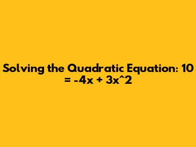Solving The Quadratic Equation: 10 = -4x + 3x^2