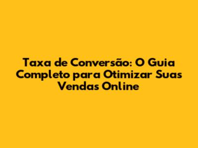 Taxa De Conversão: O Guia Completo Para Otimizar Suas Vendas Online