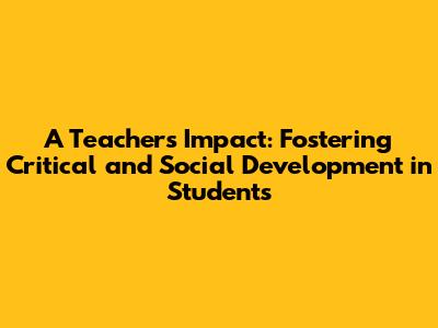 The impact of teachers who prioritize critical and social development extends far beyond the classroom. They're shaping future leaders, thinkers, and citizens. They're empowering us to make informed decisions, engage in meaningful discussions, and contribute to a better world. The skills and values instilled by these teachers stay with us throughout our lives, influencing our relationships, our careers, and our contributions to society. They provide us with a solid foundation for success in a rapidly changing world.