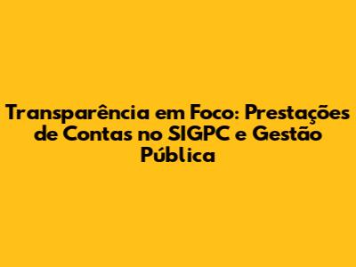 Transparência Em Foco: Prestações De Contas No SIGPC E Gestão Pública